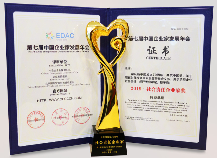 不忘初心 砥砺前行 | 集团总裁张潇女士荣获“第七届中企会2019·社会责任企业家奖”